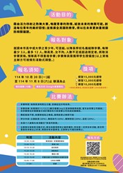 本(114)年10月20日上午10時開放線上報名,相關活動訊息可至北區區公所臉書粉絲專頁(https://www.facebook.com/tcnorth.gov)參閱。