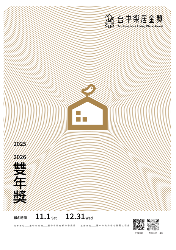 2025-2026雙年獎以 「樂居小屋」 為主題,象徵每一個社區都是城市裡的一間溫暖小屋。從培力課程扎根啟程,經由住戶的協力合作與用心經營,逐步打造出屬於大家的幸福空間。誠摯邀請市民共同參與這場充滿溫度與創意的評選活動,攜手築起一棟棟代表美好生活的「樂居小屋」。