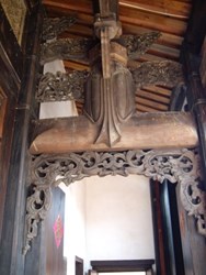 裝飾作法:計有石雕、木雕、磚雕、泥塑、書法、剪黏等,其中石雕、木雕作品線條細緻流暢,雕工精細,呈顯出俐落、纖細之美。前落正面壁身之泥塑作品,以仿磚雕方式呈現,風格古樸且優雅,具有極高藝術價值。